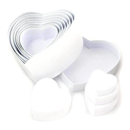 Zestaw 12 pudełek białych - kształty serca.Zestawy 12 pudełek w kolorze białym wykonanych ze sztywnego oklejanego kartonu . Każde pudełko zawiera pokrywkę. Wymiary największego pudełka - wysokość 7, 5 cm , szerokość ok. 15 cm. číst celé