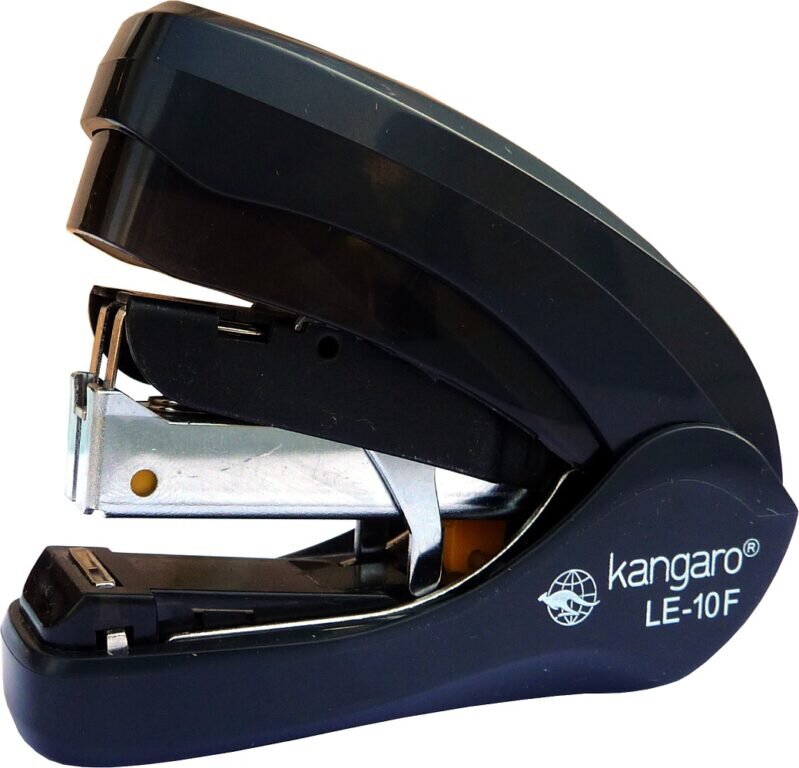 Plastová sešívačka s kvalitními ocelovými komponenty, silnější a bezpečnější ploché sevření drátků při vynaložení méně úsilí, integrovaná rozešívačka.