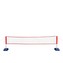 Sada se síťí pro tenis, badminton a volejbal NILS NT0300 je ideální komplet pro vyplnění volného času s dětmi. Sada obsahuje výškově nastavitelnou síť s plastovou konstrukcí, míč na volejbal s pumpičkou, dvě plastové rakety a pěnový míček na tenis, dvě plastové letky a dvě rakety na dabminton. Výškově nastavitelná síť má rozměry 45 x 300 cm a je vyrobena z polypropylenu, konstrukce je z plastových sloupků, které se spojují pomocí objímek. Složené sloupky se zasouvají do plastových "cihliček", které se před hrou naplní vodou. Součástí sítě jsou dva provázky, pomocí kterých se konstrukce napne a připevní k podkladu pomocí plastových kolíků.