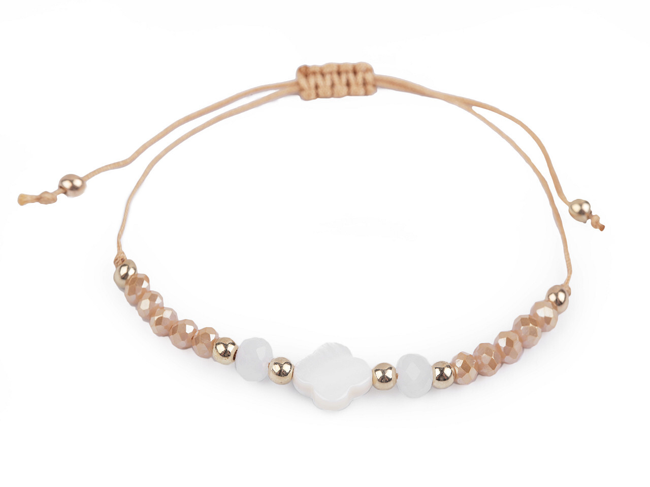 Náramek shamballa s perletí a broušenými korálky - 1 ks - 4 béžová