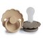 Cumlík FRIGG Daisy s vrúbkovanými okrajmi, ktoré napodobňujú lupene kvetov, je základom elegantného dizajnu. Kvetinové a moderné detaily upútajú pozornosť každej štýlovej mamičky. Vďaka tomu sa FRIGG perfektne hodí pre dnešné matky, ktoré pri výbere základných potrieb pre bábätko prikladajú veľký význam klasickému dizajnu s modernými prvkami.