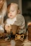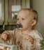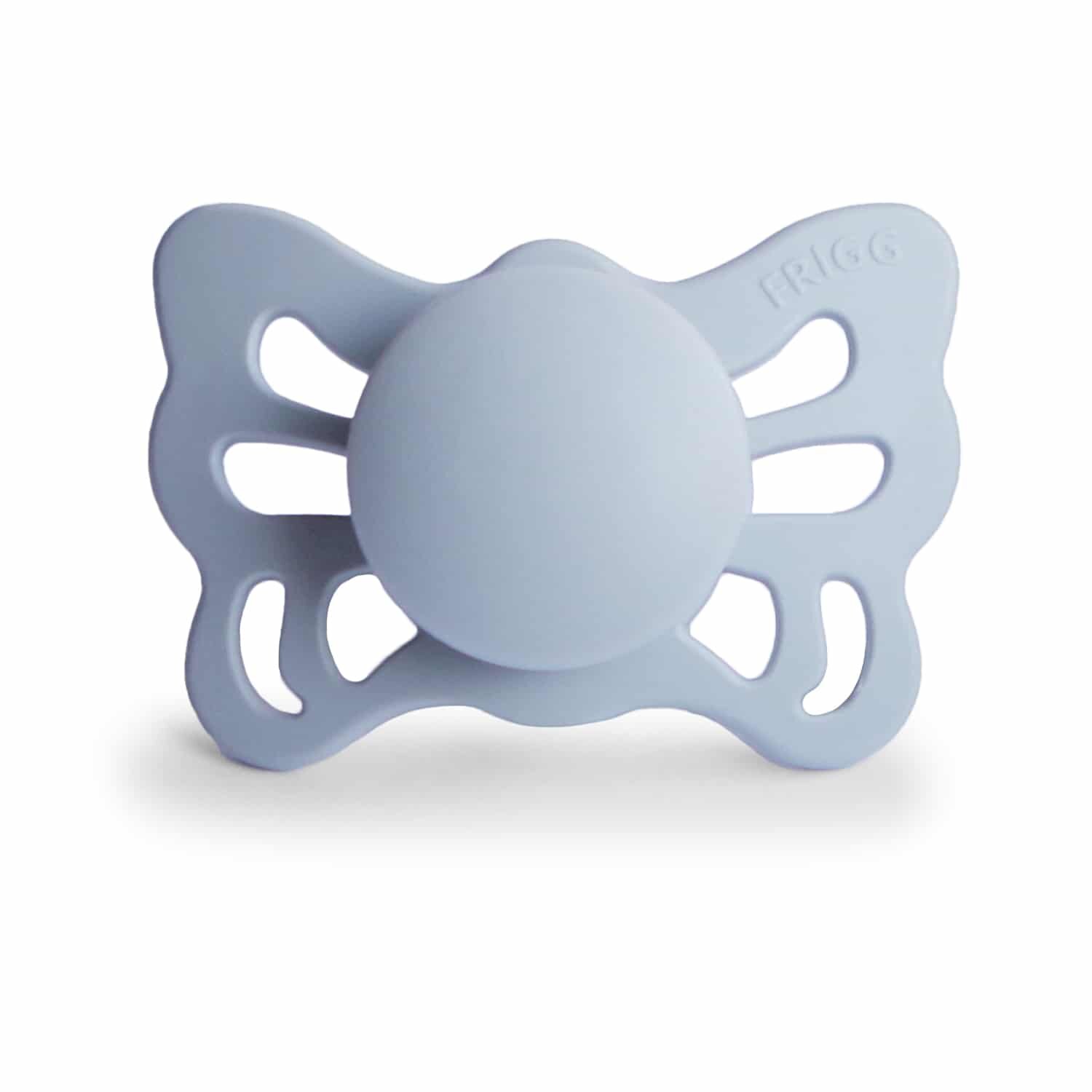 Tvar cumlíka FRIGG Butterfly pripomína motýľa. Štít so zvlnenými okrajmi má veľké vzduchové otvory pre väčšiu bezpečnosť a jeho okrúhly stred krásne zvýrazňuje eleganciu cumlíka.