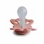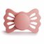 FRIGG Lucky je symetrický cumlík s mierne splošteným cumlíkom v tvare slzy. Symetrický cumlík vždy správne sedí v ústach dieťaťa, bez ohľadu na to, či je otočený nahor alebo dole.