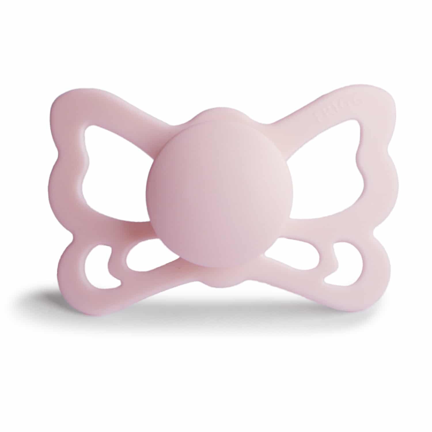 Tvar cumlíka FRIGG Butterfly pripomína motýľa. Štít so zvlnenými okrajmi má veľké vzduchové otvory pre väčšiu bezpečnosť a jeho okrúhly stred krásne zvýrazňuje eleganciu cumlíka.
