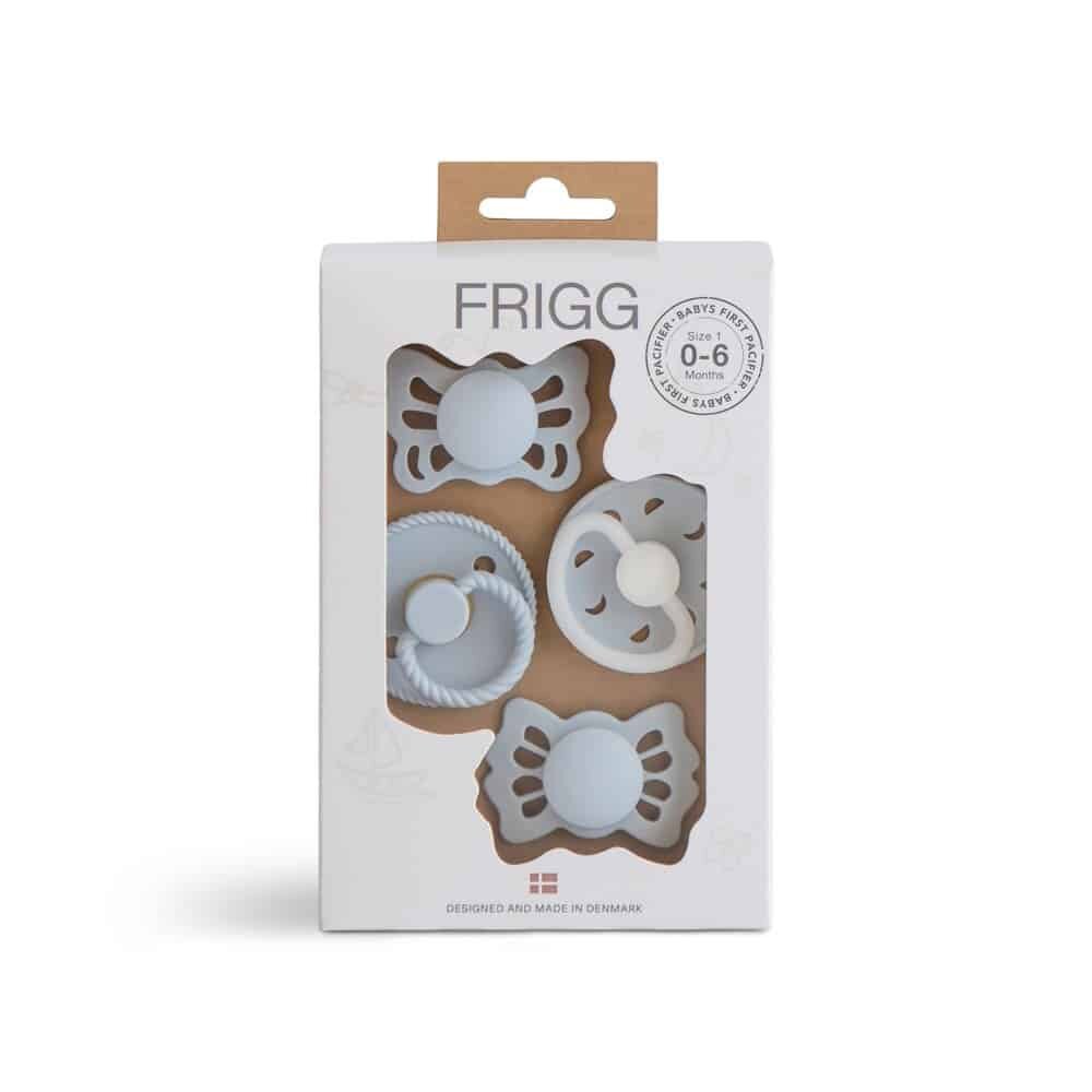 Súprava „prvý cumlík pre bábätko“ od FRIGG pozostávajúca zo 4 rôznych cumlíkov FRIGG s rôznymi materiálmi a tvarmi bradaviek dáva rodičom možnosť vyskúšať si rôzne cumlíky, aby zistili, ktorý sa ich bábätku páči najviac.