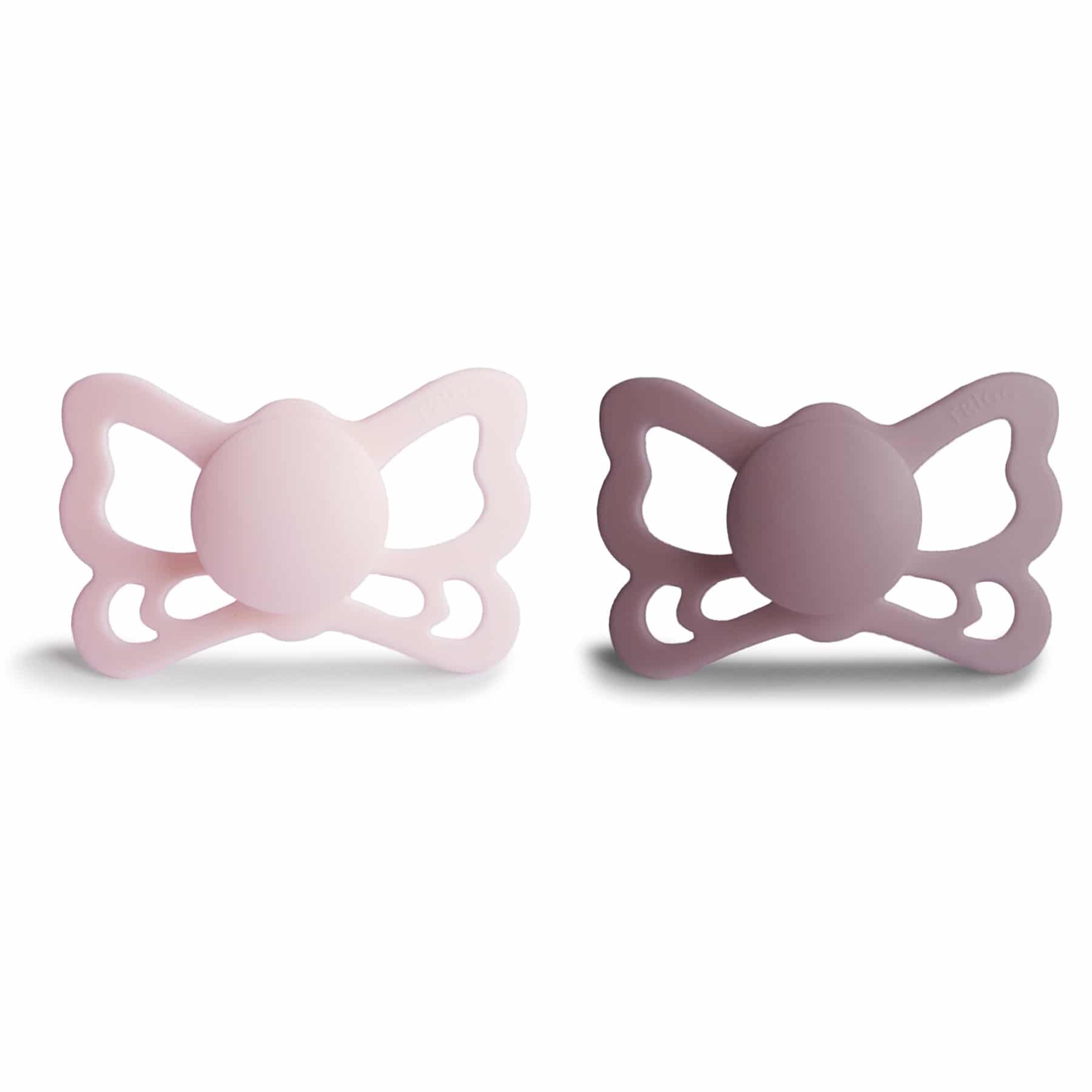 DVOJBALENIE ANATOMICKÝCH CUMLÍKOV FRIGG BUTTERFLY WHITE LILAC/ TWILIGHT MAUVE, 6-18M, SILIKÓN