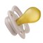 Vnější symetrická barevná část dudlíku s větracími průduchy (štít) obsahuje antimikrobiální přísadu na bázi stříbra, která eliminuje až 99,9% bakterií. Terčík s větracími průduchy zakrývá menší část kůže kolem pusinky dítěte a zmenšuje se tak riziko vzniku nechtěného ekzému pod terčíkem dudlíku. Symetrické tvarování barevného štítu zajišťuje optimální průchodnost vzduchu pod nosem dítěte.