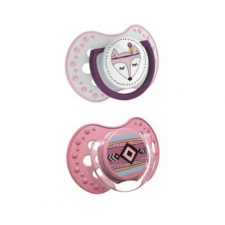 Tento dudlík je vyroben ze zdravotně nezávadného silikonu bez BPA, který neobsahuje chuť ani zápach, je odolný a snadno se čistí. Speciální otvory ve štítku umožňují volné dýchání nosem a cirkulaci vzduchu, což zabraňuje podráždění citlivé dětské pokožky. Péče o dudlík je jednoduchá - stačí jej před prvním použitím sterilizovat a pravidelně kontrolovat jeho stav. Součástí balení jsou dva dudlíky a praktická plastová krabička pro hygienické uchovávání.