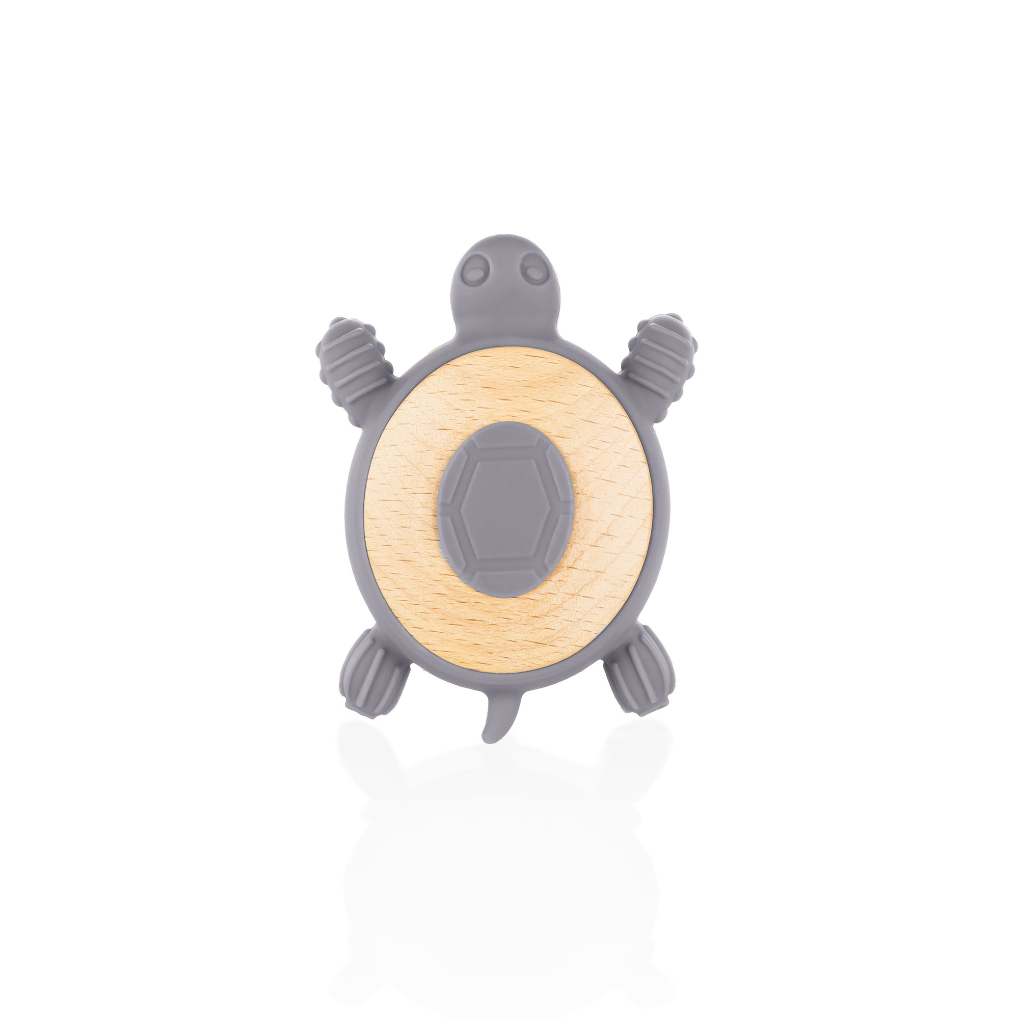 Silikonové dřevěné kousátko Turtle, Dove Grey