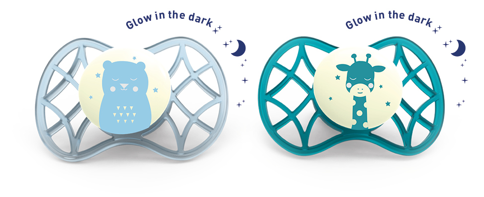 Fyziologické dudlíky Explorer 0m+ 2ks svítící ve tmě, Male