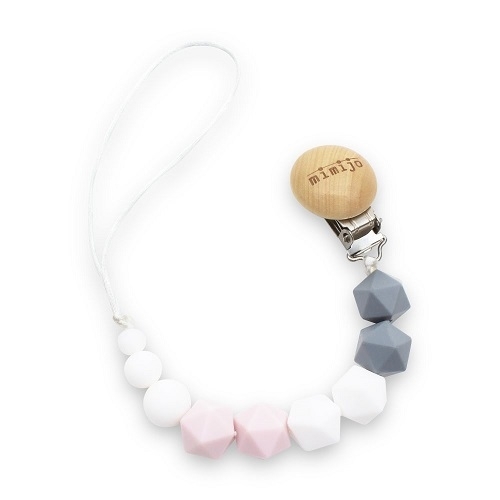 Mimijo Silikonový řetízek na dudlík TINA cca 22cm, růžovo-šedo-bílý