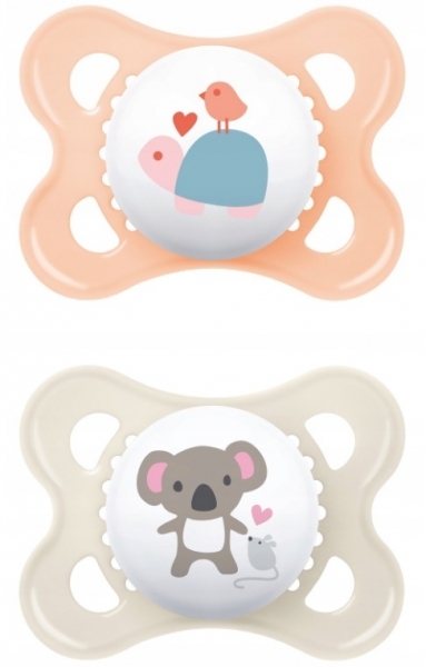 Ortodontický silikonový dudlík MAM, Original Girl 2-6 m, smetanová/meruňková, 2 ks