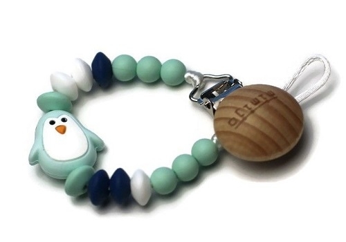 Mimijo Silikonový řetízek na dudlík Tučňák, cca 22cm, mátový