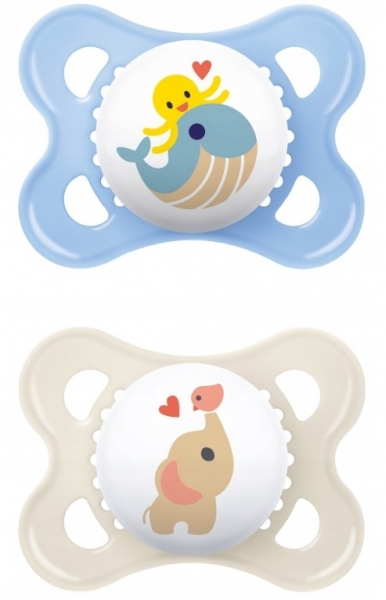 Ortodontický silikonový dudlík MAM, Original Boy 2-6 m, smetanová/modrá, 2 ks