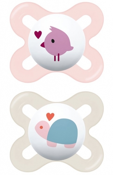 Ortodontický silikonový dudlík MAM, Start Girl 0-2 m, smetanová/růžová, 2 ks