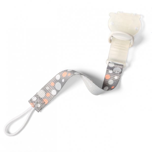 Páska s praktickým klipsem, který zaručí pevné připevnění k oděvu dítěte.
