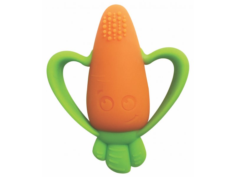 Toto kousátko v podobě usměvavé mrkvičky je navrženo tak, aby malé ručičky mohly kousátko snadno uchopit a pohodlně držet. Jeho pružný a bezpečný materiál nejenže masíruje dásně, ale zároveň zabraňuje nepříjemnému svědění, které při prořezávání zoubků nastává. Navíc je zcela bez BPA, což zaručuje bezpečné používání od narození.