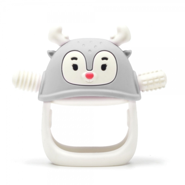 Sobí kousátko - ideální pro druhou fázi prořezávání zoubků, kdy zesílí bolest způsobená prořezáváním zubů. Na rozdíl od tučňáka má sobí kousátko různé textury, které stimulují dětské dásně a tiší bolest při prořezávání zoubků.