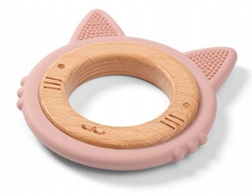 Dřevěné a silikonové kousátko BabyOno - Kočička v jemném pudrovém odstínu je ideální volbou pro vaše dítě již od narození. Pomáhá zmírnit nepříjemné pocity během prořezávání zoubků a zároveň zaujme bezpečným a přírodním designem.