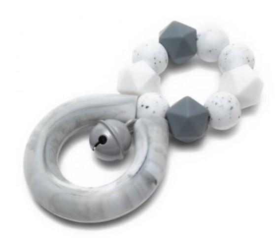 Mimijo Silikonové kousátko a chrastítko s rolničkou 4ever - Marble