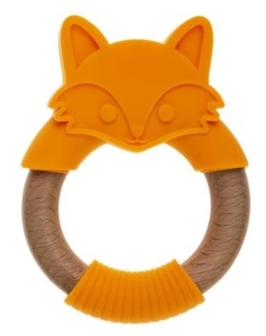 Silikonové, dřevěné kousátko Liška - oranžové
