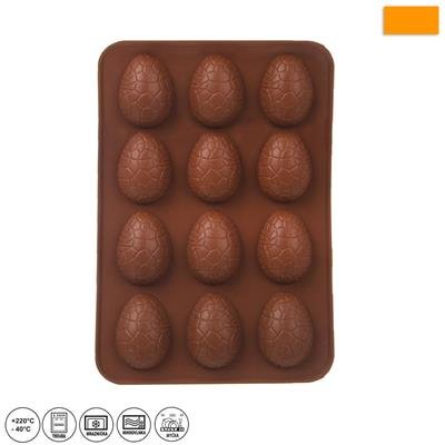 Silikonová forma Vám vytvoří velikonoční dobroty z piškotového, litého těsta nebo čokolády ve tvaru vajíček. Materiál: silikon. 12 forem. Snáší vysoké teploty. (od -40 °C do +220 °C), nepřejímá chutě ani vůně z použitých potravin. Vhodná do myčky na nádobí. Rozměry: 15x23,5x1,5 cm, vajíčko 5x3,3 cm.