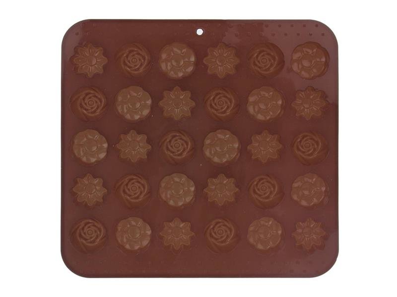Forma s rozměry 21 × 20,5 × 1,5 cm obsahuje 30 květinkových tvarů, každý o průměru přibližně 2,8 cm. Tato praktická velikost je ideální pro výrobu drobných dekorací, které vaše zákusky či cukroví promění v malé umělecké dílo. Hnědá barva formy působí elegantně a snadno zapadne do vaší kuchyňské výbavy.