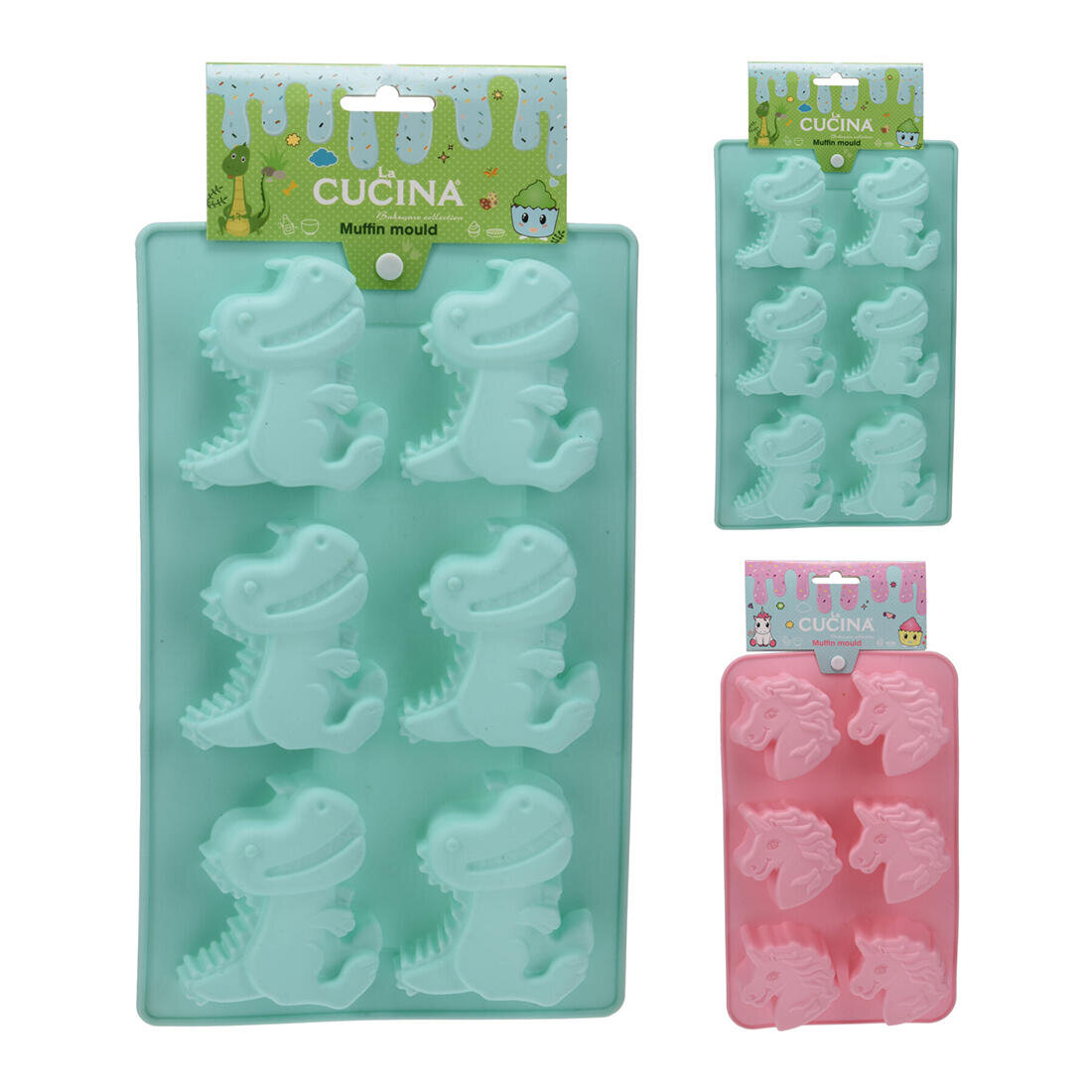 forma 6 ks, 27,5 cm, silikon JEDNOROŽEC / DINOSAURUS.