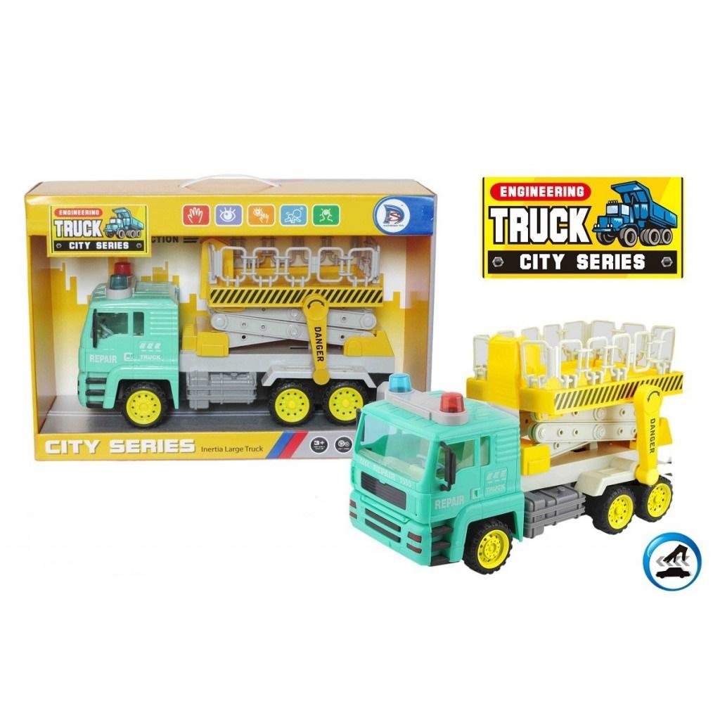 Duży podnośnik do złudzenia przypomina prawdziwy pojazd (36cm). Idealny do zabawy w domu. Posiada ruchome elementy i platformę na której zmieści się duży ładunek.Ciężarówka ma napęd typu frykcja i i wykonana jest z dobrej jakości plastiku.Wymiary zabawki: 37.5 x 19.5 x 15 cm.