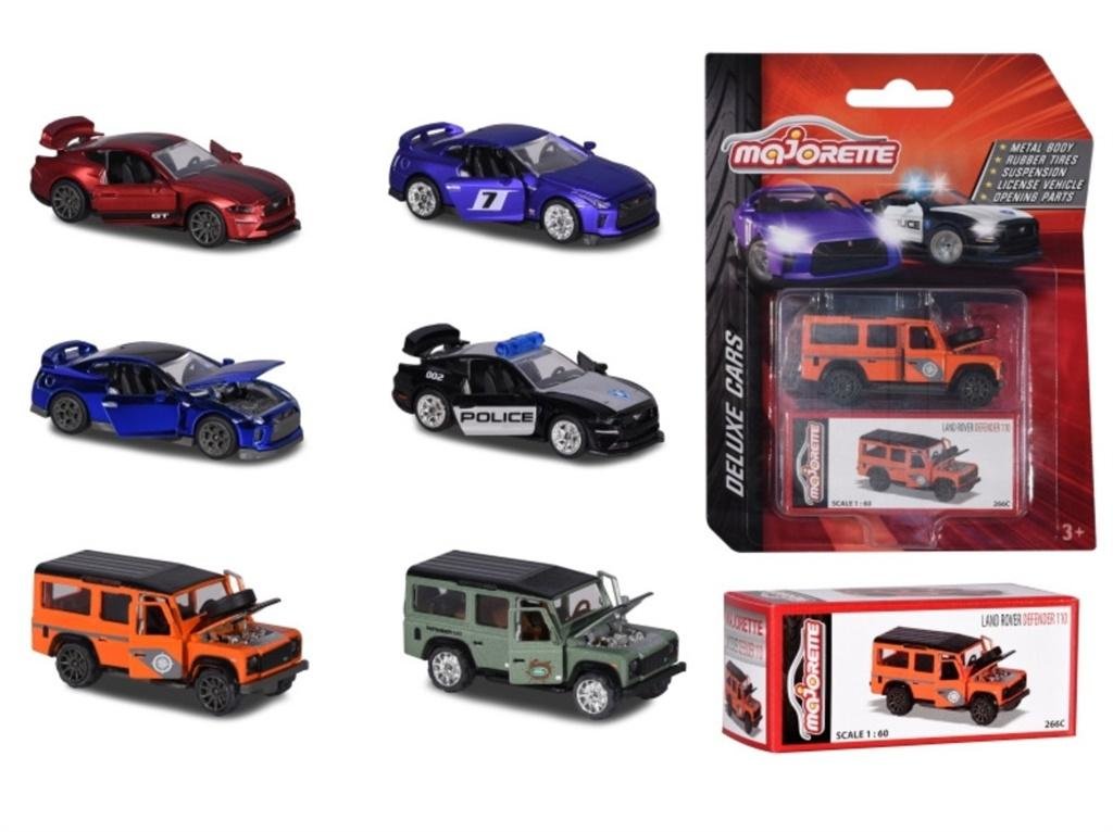 Linia Deluxe to samochody na licencji znanych marek, posiadają dwa otwierane elementy, metalowe nadwozie, gumowe opony, resory, ekskluzywna dekoracja, pudełko kolekcjonera, 7,5 cm. Mix wzorów, towar wysyłany losowo. číst celé