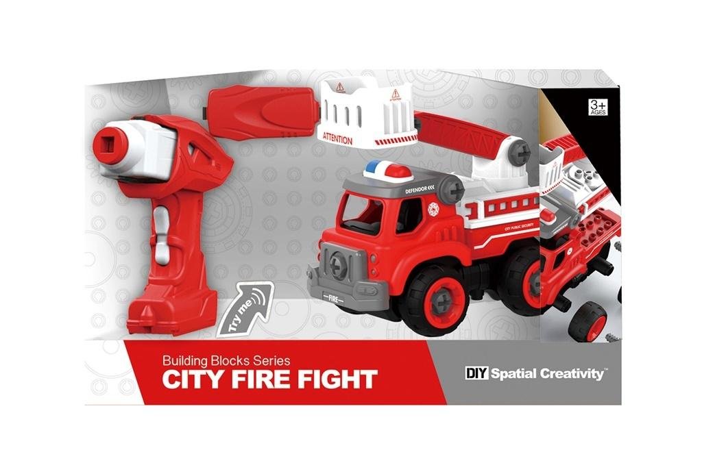 Pojazd do skręcenia za pomocą załączonej wkrętarki na baterie. Auto składa się z części, które łączymy załączonymi śrubami. Po złożeniu silniczek z wkrętarki wyjmujemy i możemy zamontować w pojeździe. Dzięki temu auto będzie samo jeździć. Dostępne wiele wzorów modeli budowlanych jak koparki, dźwig, walec i wiele innych maszyn budowlanych oraz służmiejskich. Silniczek zdalnie sterowany za pomocą pilota. Skręcając pojazd możemy sterować czy ma wkręcać czy wykręcać śrubki. Gdy przełożymy silnik do pojazdu sterujemy czy ma jechać do przodu czy do tyłu.