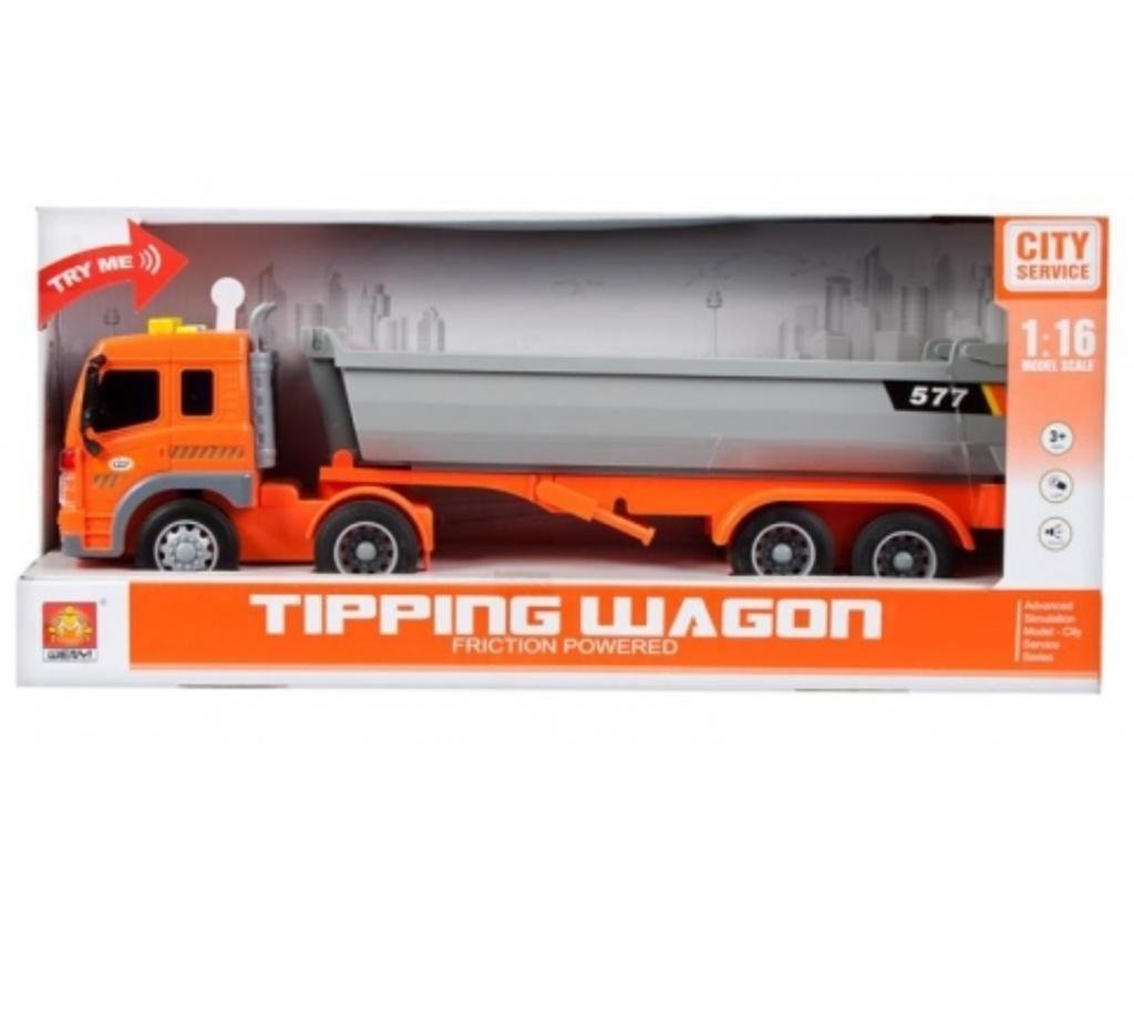 Pozwól swojemu dziecku stać prawdziwym kierowcą ciężarówki. Auto ciężarowe MEGA CREATIVE to idealny pomysł na wspaniałą zabawę z przyjaciółmi Pojazd z naczepą po włączeniu wydaje odgłosy jeżdżącej ciężarówki oraz świecą się lampki ostrzegawcze. Ponadto samochód ma podnoszoną przyczepę z której dziecko podczas zabawy może wykierować zawartość. Pojazd posiada efekty dźwiękowe oraz świetlne. Dodatkowo posiada ruchome elementy. Pojazd w skali 1 16. Produkt wykonany z plastiku. Przeznaczony dla dzieci w wieku 3 . Wymaga zasilania bateriami 3 x AG13- załączono do zestawu.
