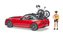 Zabawka Auto Roadster z figurką kolarki i rowerem | Bruder 03485