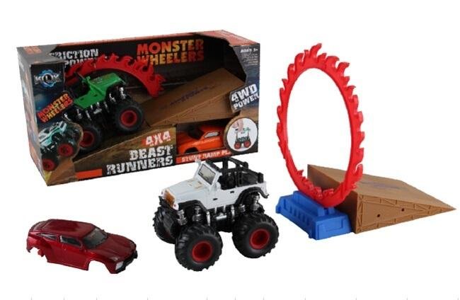 Samochód kaskaderski zapewni emocjonujące widowisko. Terenowy samochód na dużych kołach będzie musiał przeskoczyć nad samochodami, jednak najpierw czeka go przeskok przez płonącą obręcz. W zestawie znajdziesz terenowy samochód, wymienną karoserię, wyskocznię i płonącą obręcz. Samochodzik posiada gumowe koła, dzięki temu łatwiej mu poruszać się po różnych powierzchniach.