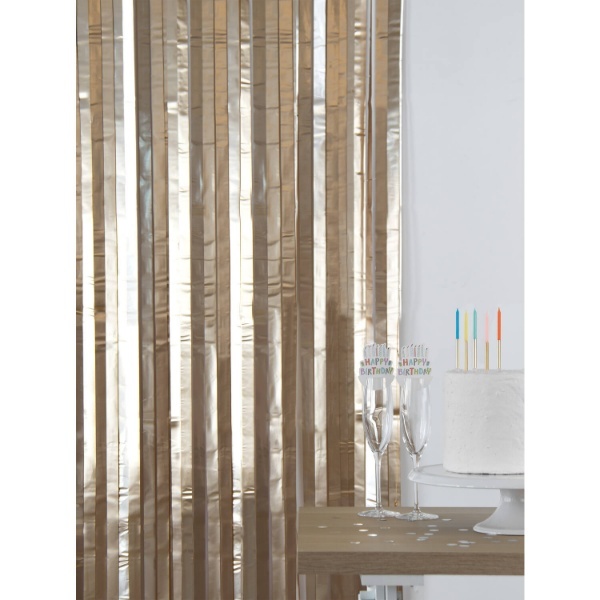 Matný zlatý party závěs je perfektním doplňkem, který dodá vaší oslavu ten správný šmrnc a eleganci. Snadno jej připevníte díky oboustranné lepící pásce, která je na závěsu přímo připravena, a vytvoříte tak okamžitě slavnostní atmosféru.