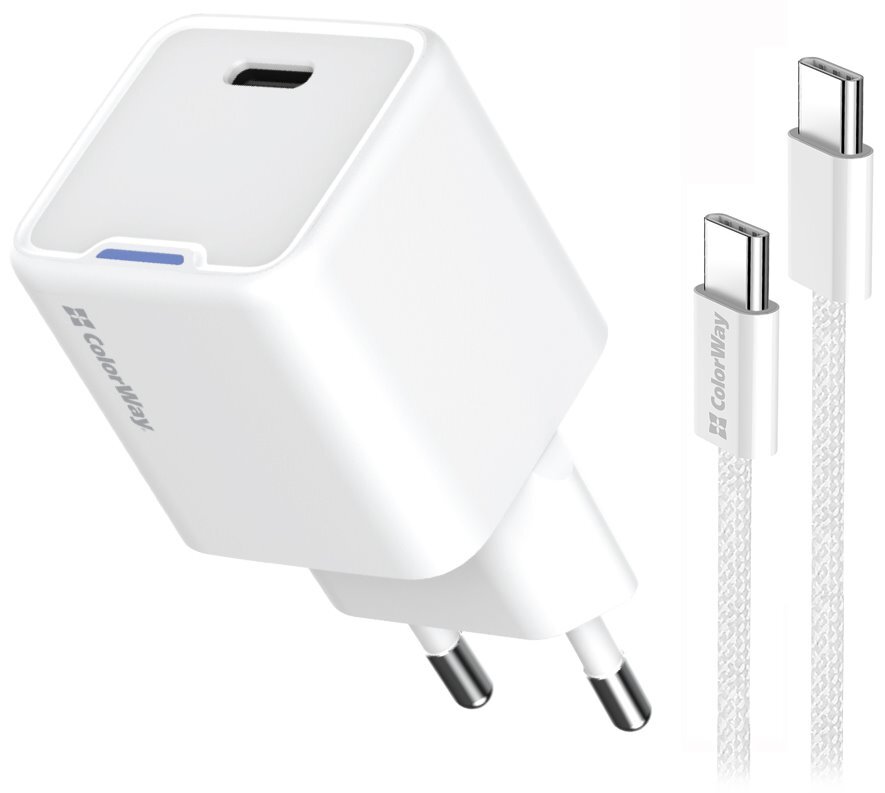 COLORWAY 1x USB-C/ síťová nabíječka/ GaN/ PD/ PPS/ 30W/ Včetně 100cm kabelu/ Bílá