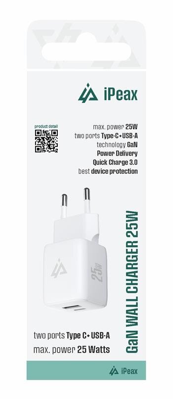 iPEAX GaN síťová nabíječka 25W (USB-C + USB-A) BÍLÁ