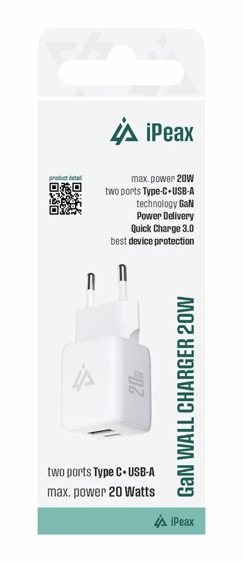 iPEAX GaN síťová nabíječka 20W (USB-C + USB-A) BÍLÁ