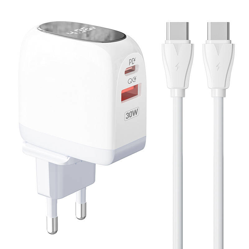 LDNIO A2522C USB, USB-C 30W síťová nabíječka + kabel USB-C - USB-C
