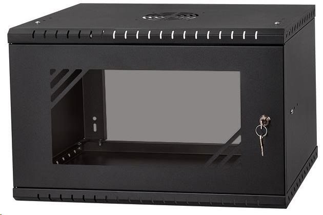 LEXI 19\" nástěnný rozvaděč Basic 6U, šířka 520mm, hloubka 350mm, skleněné dveře, bez zad, černý