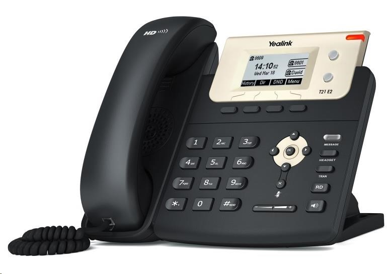 Yealink SIP-T21P E2 IP telefon, 2,3\" 132x64 LCD, 2 prog.tl. 2x 10/100, PoE, 2x SIP, bez adaptéru