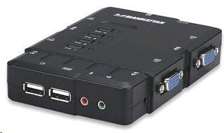 MANHATTAN KVM přepínač 4 porty, USB, audio, integrované kabely