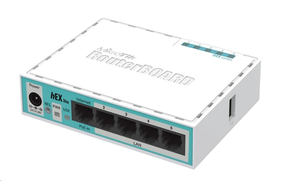 MikroTik RouterBOARD hEX lite, 850MHz CPU, 64MB RAM, 5x LAN, vč. L4 licence