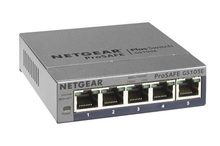 - ProSafe 5-port or 8-port Gigabit Ethernet Switch (GS105E)