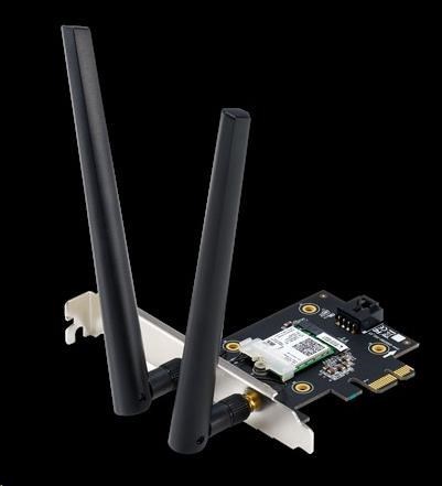 AX3000 Dual Band PCI-E WiFi 6 (802.11ax). Supporting 160MHz, Bluetooth 5.0, WPA3 network security, OFDMA and MU-MIMO