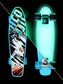 Vypadá jako běžný skateboard, ale jeho kouzlo se objeví po setmění! Speciální materiál desky se přes den nabíjí slunečním svitem a v noci září. Za jízdy se navíc rozsvítí kolečka, která jsou napájená dynamem.Řada Glow je stvořena pro zábavu a bezpečnou jízdu i za tmy. Vyndej ho z batohu a jeď.VLASTNOSTI:deska vysoce odolný jednolitý PP plast - v noci zářírozměr desky 57,2x16cm (22,5"x6,3")rozvor mezi kolečky 28,5 cmtrucky 3,25" ALULED kolečka 60x45mm, 78A, PU, hranaté okrajesilentblok (bushing) 97A PUložiska ABEC 7 doporučený věk 5+ hmotnost 1,8kg max. nosnost 100kg