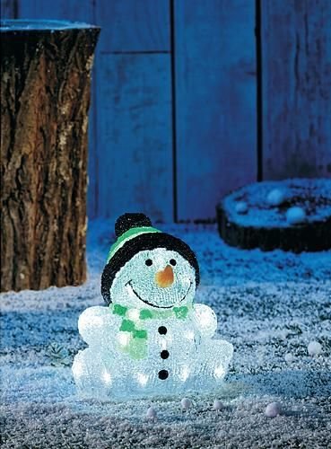 Venkovní svítící LED dekorace sněhulák bude krásnou ozdobou před Vaším domem, na terase, či balkóně,.. 30x LED - studená bílá. Časovač. Typ napájení - 3x AA baterie (nejsou součástí balení).Materiál - akryl. Rozměry - 24x20x24 cm.