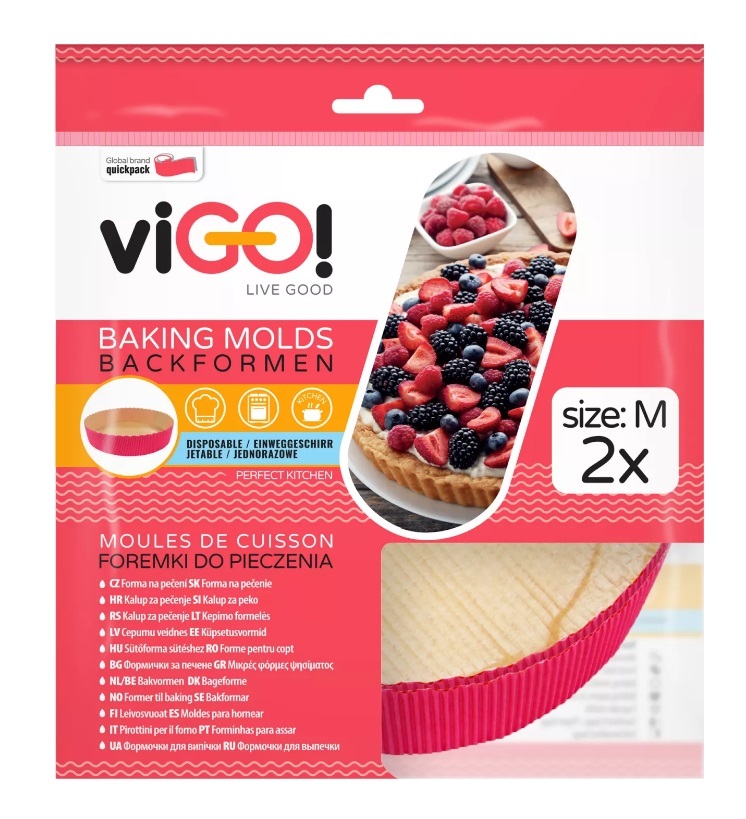 Forma na pečení papírová, kulatá je samonosná a vyniká tvarovou stabilitou. Vnitřní úprava formy zaručuje nepromastitelnost. Není určeno pro opakované použití, použité obaly můžete dále recyklovat. Maximální teplota pečení je 220°C. Rozměr: 215,5x3,5 cm. Balení: 2ks