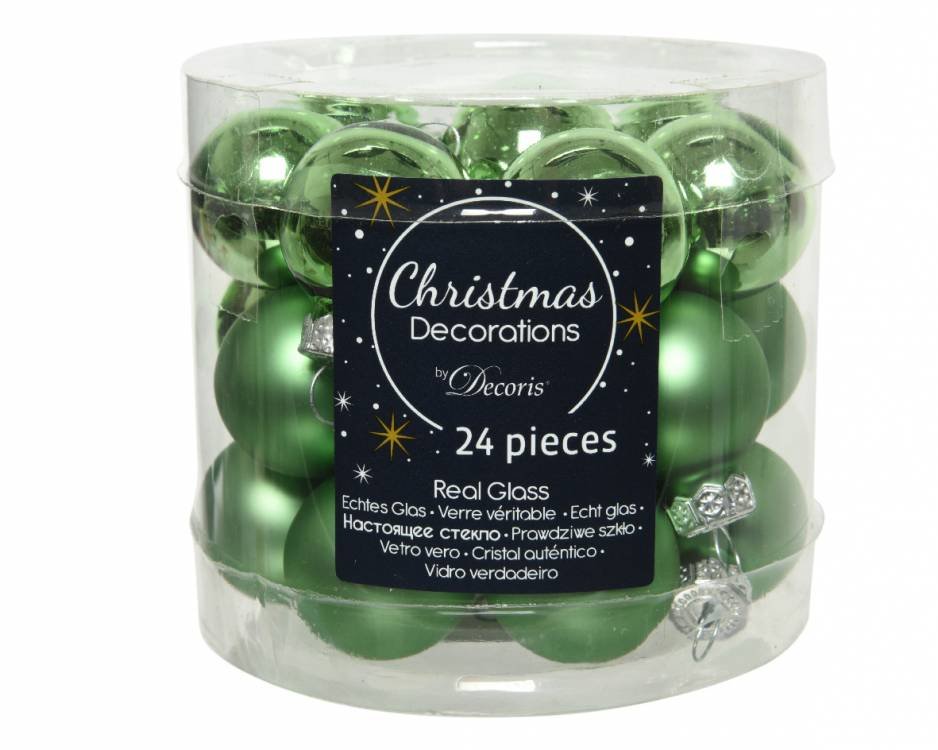Vánoční ozdobička na stromeček ve tvaru kuličky v zelené barvě (kombinace mat a lesk).24 kusů v plastové dóze.Materiál - skloRozměry - průměr kuličky 2,5 cm číst celé