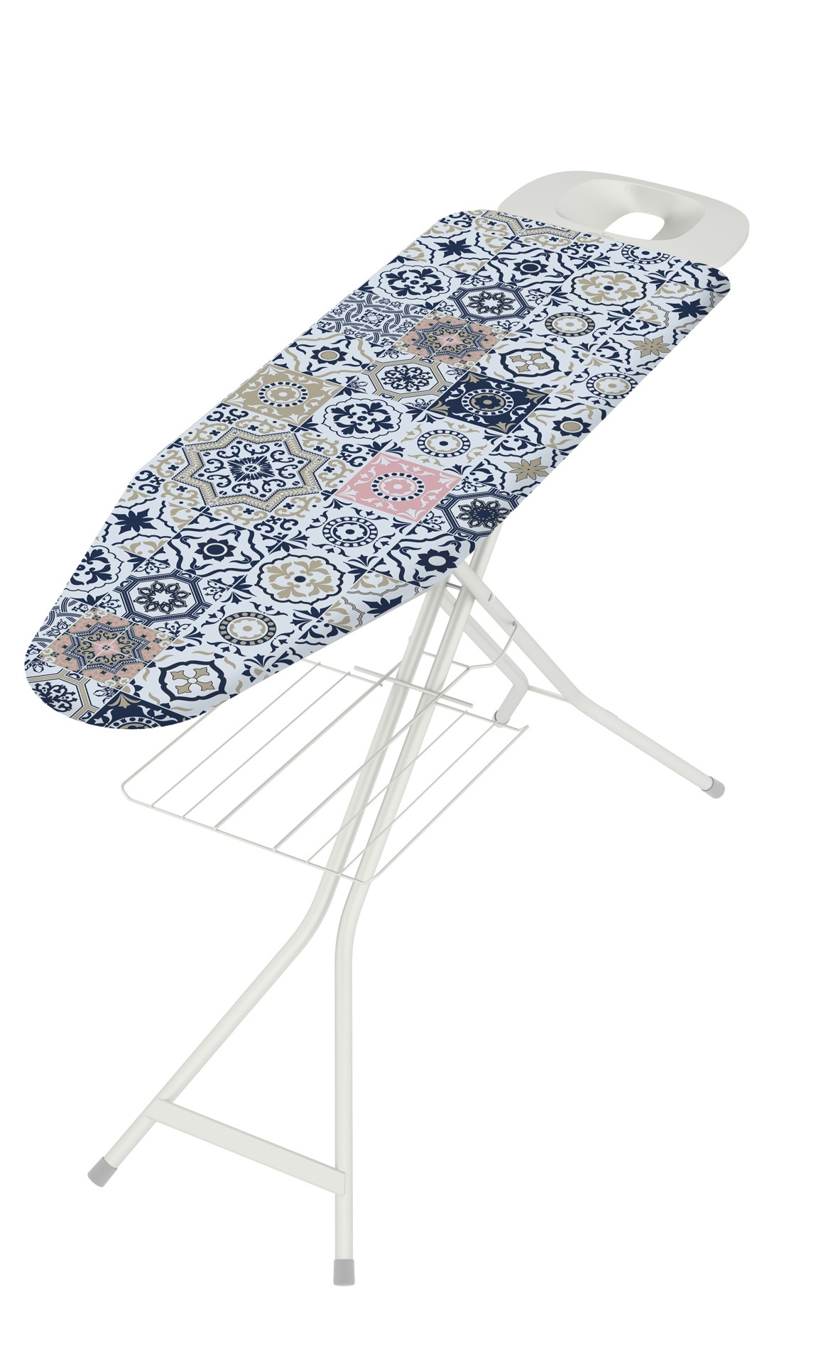 Žehlící prkno PRACTICA o rozměrech 120x40 cm s 6 polohovým nastavením až do výšky 95 cm.Opěrka parní stanice se silikonovými vložkami. Potah ze 100% BIO bavlny. Držák na ramínka a stojan na prádlo. Foto ilustrační, potah dle nabídky dodavatele, nelze zvolit!Nohy o průměru 22 mm číst celé